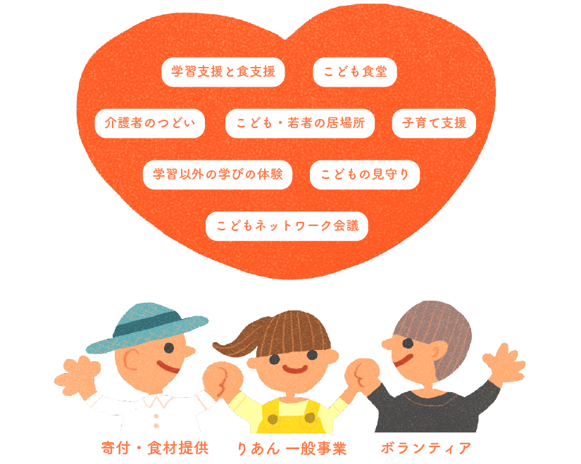 こども食堂りあん・学習支援は皆様からのご寄付で活動しています。子どもたちに、皆で一緒にご飯を食べる楽しさ、お腹いっぱい食べる喜び、環境に左右されずに楽しく学ぶことを知ってほしい。わたし達は、そんな思いで取り組んでいます。皆様のあたたかいご支援をお待ちしております。
